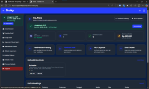 Menampilkan ringkasan performa bisnis secara real-time dan menyediakan akses cepat ke fitur utama.