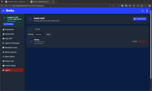 Edit Staff: klik Edit, ubah data, lalu simpan.
