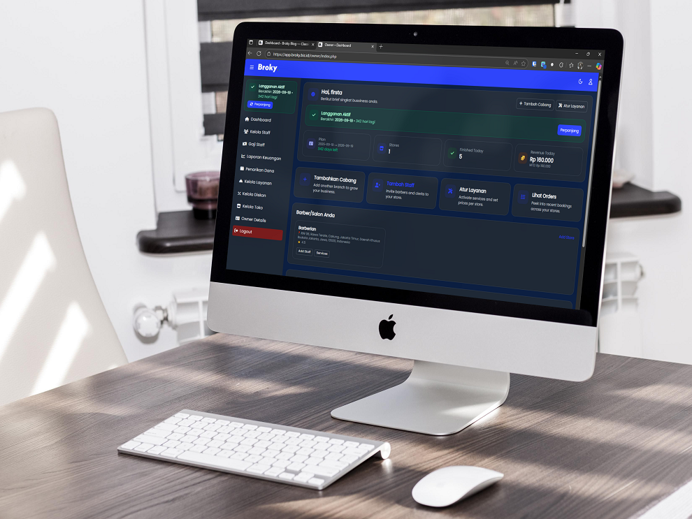 Seluruh modul terhubung secara otomatis dan disinkronkan dalam sistem berbasis cloud untuk mendukung efisiensi operasional barbershop.